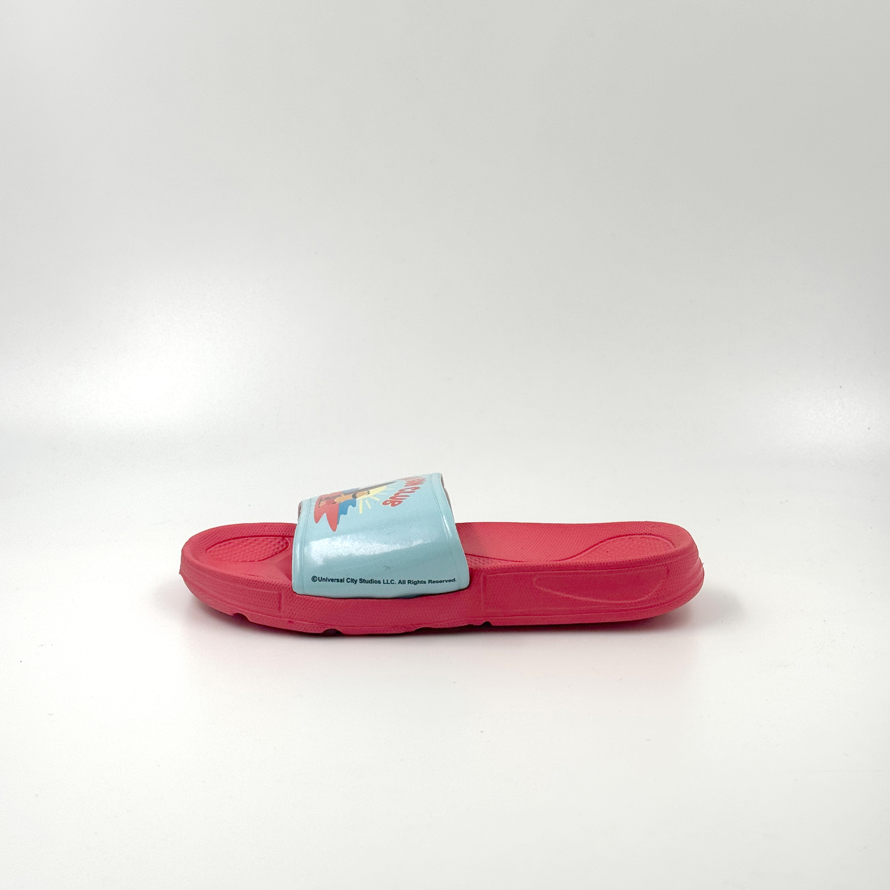 Zapatillas de casa bicolor rojo y azul, calzado infantil, estampado divertido.